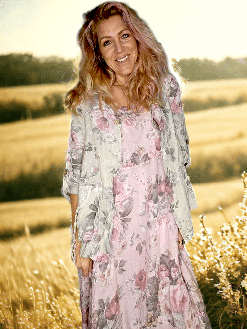 Helga May - Beige Scarlett Rose Sequin Pocket Linen Jacket
