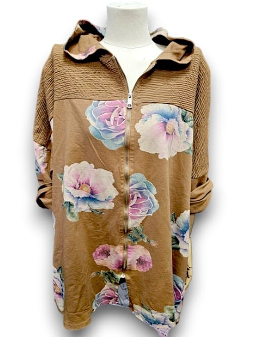 Helga May - Coffee Ombre Peony Patchwork Hoodie