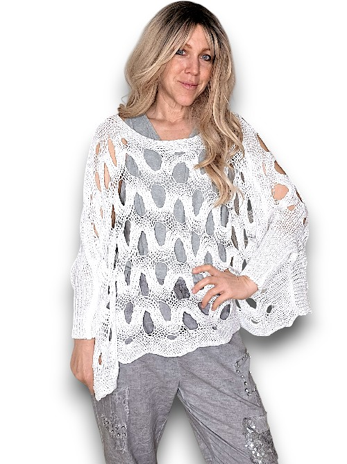 Helga May - White Wave Hollow Boxy Cuff Knit