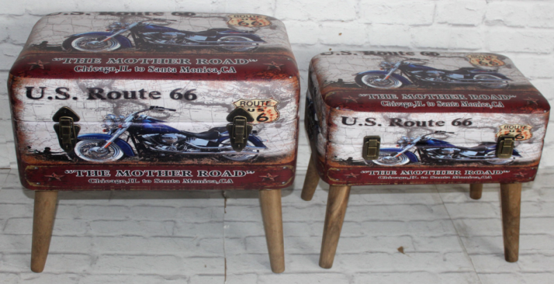 Storage Seats - Route 66 storage seats set of 2 - 52cm x37cm x 46cm high and 46cm x 30cm x38 cm high